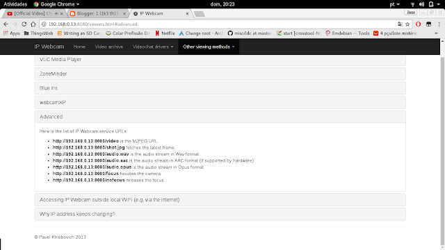 Com esta opção aberta, usaremos a opção http://192.168.0.13:8080/video